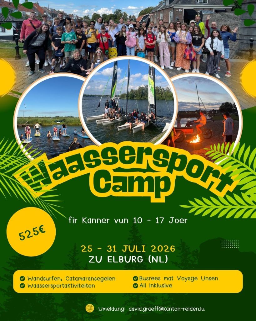 Umeldungen fir déi verschidden Aktivitéiten kënnt dir op david.graeff@kanton-reiden.lu schécken.